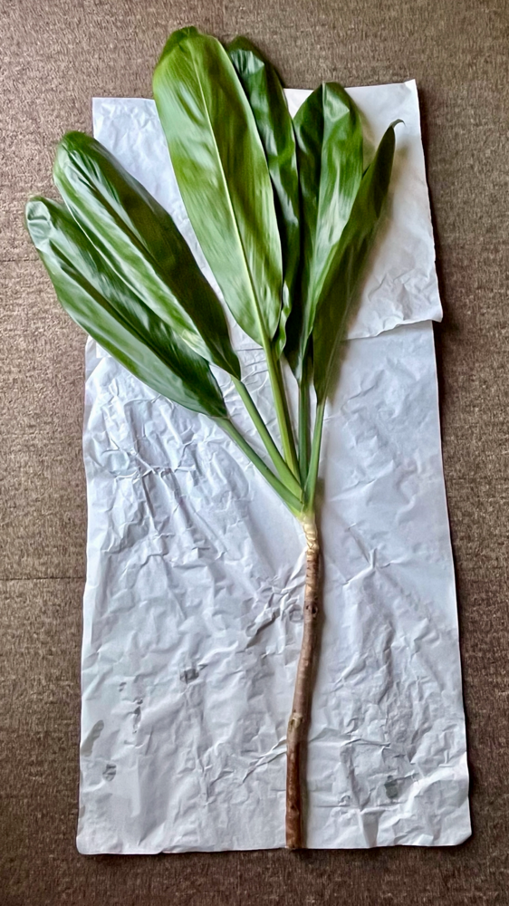 まずはたくさん付いている美しい緑の葉を外し、葉はティーリーフのレイや花のレイ作りに使用するために保存します